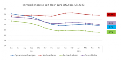 - Wie haben sich die Immobilienpreise von Juni 2022 bis Juli 2023 entwickelt?